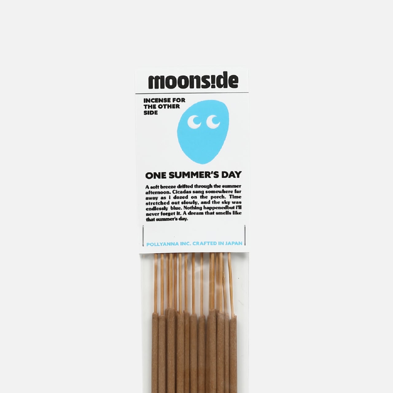 moonsideは、国内の工房で一つひとつ丁寧に仕立てたインセンスです。調香から仕上げまでを自社で完結し、香りの奥行きと確かな品質を届けます。静かに燃える煙に、職人の手仕事が宿ります。